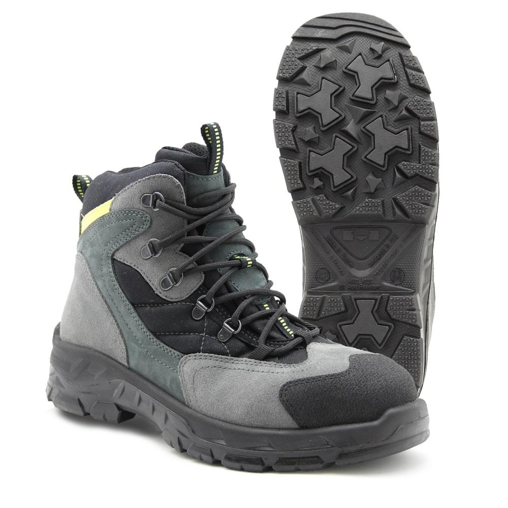 - Ботинки имеют оригинальный дизайн с боковыми вставками из влагостойкого полимерного материала «кордура», облегчающего вес обуви, сохраняя ноги в сухости при длительных интенсивных нагрузках. Носочная часть имеет дополнительную защиту в виде накладки из кожи повышенной толщины с ПУ покрытием, предотвращающей загрязнения и преждевременный износ защитной обуви. Эргономичный мягкий кант обеспечивает хорошее облегание обуви по ноге.