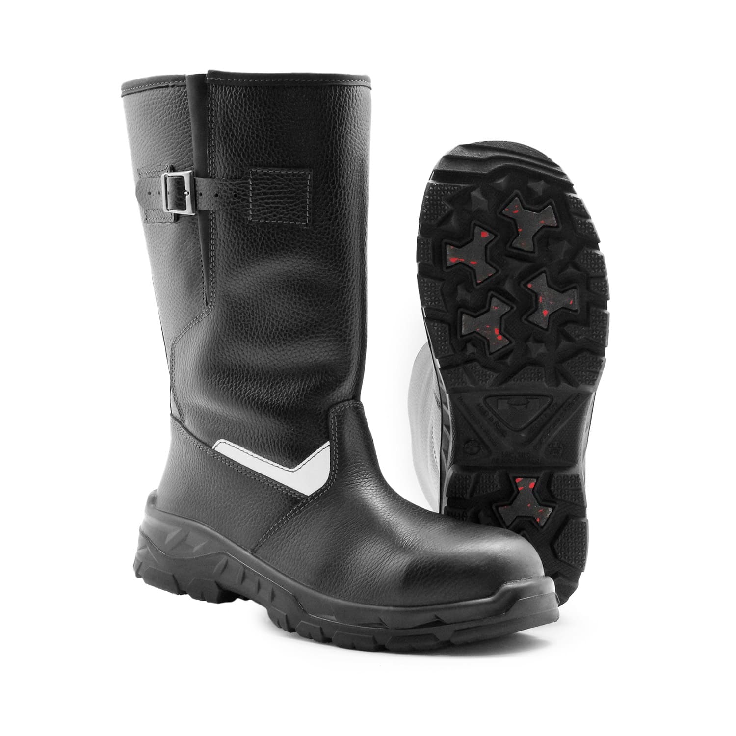 - Модель дополнена застежкой на ремешок с металлической пряжкой для надежной фиксации и комфортного максимально плотного прилегания обуви к голени. Увеличенная высота сапог - надежная защита от холода и производственных загрязнений.