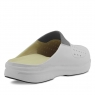 Подошва выполнена из комбинации ЭВА и термополиуретан. Ходовой слой из термополиуретана добавляет антискользящие свойства подошве и повышенную стойкость к истиранию, что делает модель безопасной для использования в медицинских учреждениях, где возможны влажные и скользкие покрытия. Двухслойная подошва обеспечивает надежное сцепление с поверхностями, что минимизирует риск падений на скользких полах. Материал ЭВА обеспечивает легкость и отличную амортизацию, снижая усталость и нагрузку на стопы при продолжительном ношении.