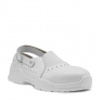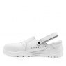 - Сандалии имеют полузакрытую конструкцию типа «Сабо», с центральной эластичной вставкой и задним регулируемым ремнем, что обеспечивает легкий вес обуви, и более комфортные условия носки в течение рабочей смены. Перфорация носочной и боковой части сандалий способствует лучшему воздухообмену, предотвращая перегрев стопы, что особенно важно в теплую погоду или отапливаемом помещении. Центральная эластичная вставка сандалий обеспечивает комфортную посадку на стопах разной полноты, а задний ремень позволяет отрегулировать посадку обуви под индивидуальные особенности носчика.